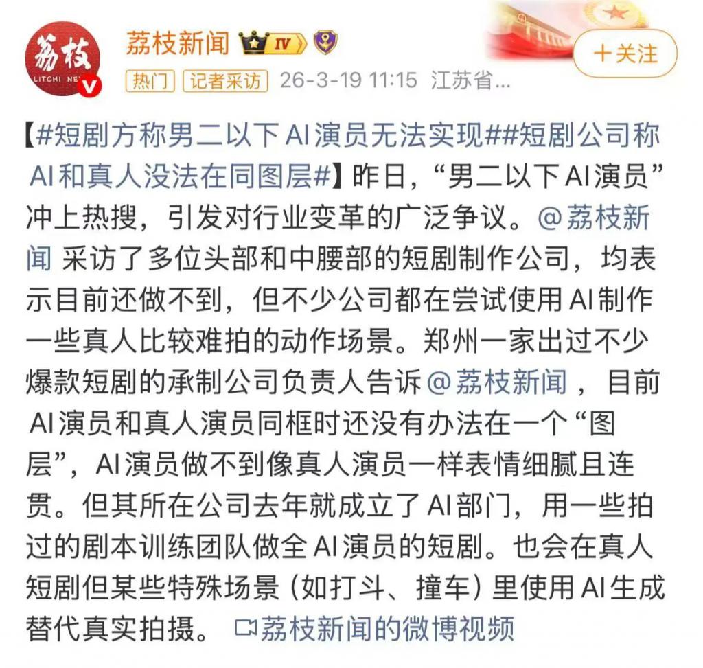 以后拍短剧配角全 AI?演员悬了