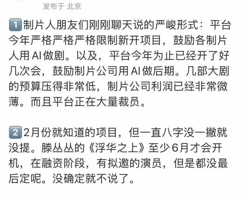 资本留着他们,既要付片酬,还得被观众骂,不如直接换成 AI,省心又省钱。