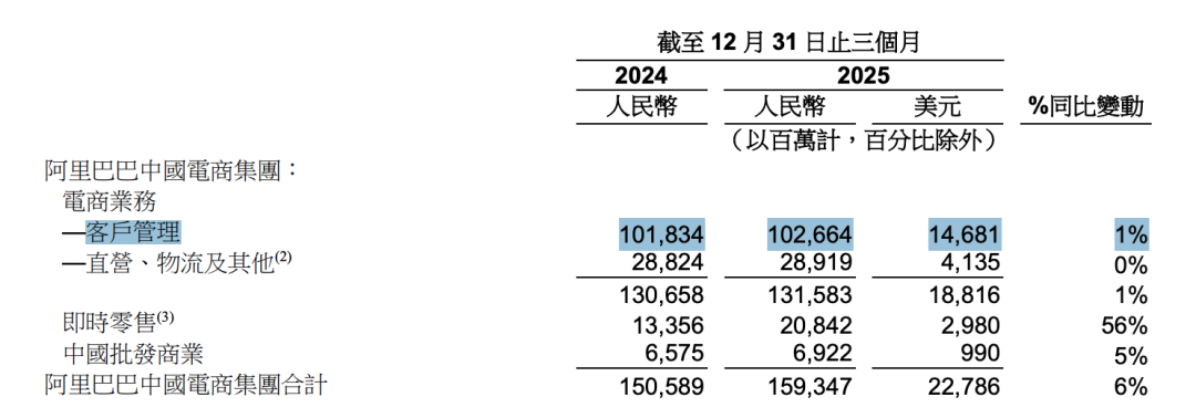 阿里巴巴2025年前三季度客户管理收入同比增速基本维持在10%左右,四季度收入为1026.64亿元,同比增长1%,几乎与去年同期持平。2025全年的客户管理收入为3419.20亿元,同比增长8.60%。