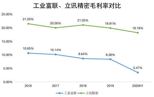 当然,立讯精密备受追捧的背后还有一个比之工业富联而言堪称优秀的优势——毛利率。
