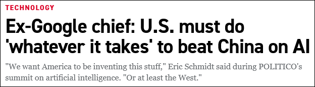 谷歌前CEO:美国必须“不惜一切代价”在AI领域击败中国