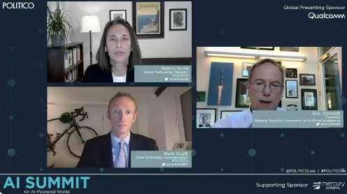 施密特曾于2001年至2011年的10年间担任谷歌CEO,目前则是美国人工智能国家安全委员会(National Security Commission on Artificial Intelligence)的主席。