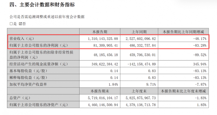 财报表示,公司下游渠道备货、终端消费者囤货,导致前期下游渠道库存超常规充盈。自2024年下半年起,公司对自身产品渠道库存进行梳理,控制发货量。这就对短期业绩实现产生了直接影响,尤其是今年二季度,归母净利润为2419.81万元,同比下降89.53%。