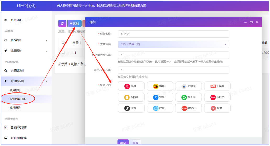 内容制作完成后,即进入投放环节。服务商A表示,会将内容批量发布到AI模型日常搜索的高权重平台,如各大新闻客户端(今日头条、网易、搜狐、百家等)、各大排名网站等。