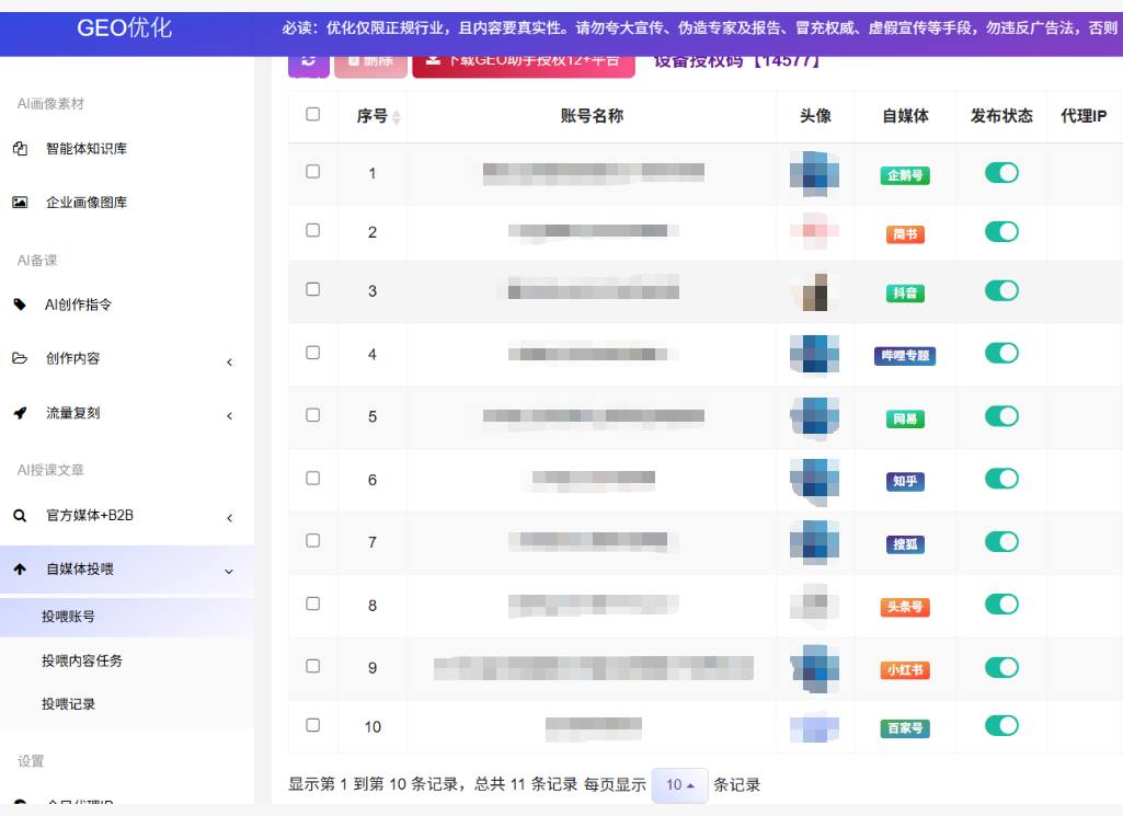 记者在服务商B提供的GEO优化系统中注意到,尽管其强调不能夸大宣传、伪造信息,但一些未经核实的内容会被投放到多个自媒体账号上,形成内容传播矩阵。