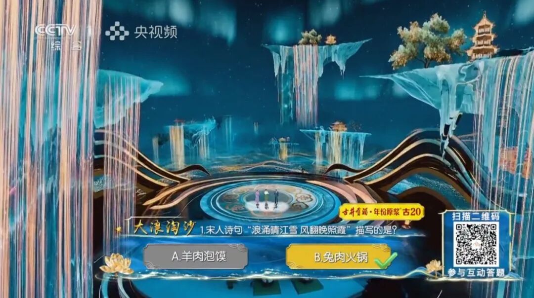 本季节目设置“春秋多佳日”“润物细无声”“山水有清音”“千秋传雅韵”等十大主题内容,通过诗词呈现了中华文明的发展逻辑。同时,节目深度融合文化传承与科技创新,通过运用特殊光效与绘制解算手法,将演播空间打造成具有电影质感的虚拟视觉场域。舞台中,波澜起伏的海浪、腾跃飞舞的巨龙、清新雅致的荷花等与诗词意境深度融合。节目还首次通过AI生成并嫁接实拍的方式,重现灯火辉煌、人声鼎沸的“盛世长安”,使鲜活的“古人”穿行其间,与现场观众共同感受诗词中的烟火人间。