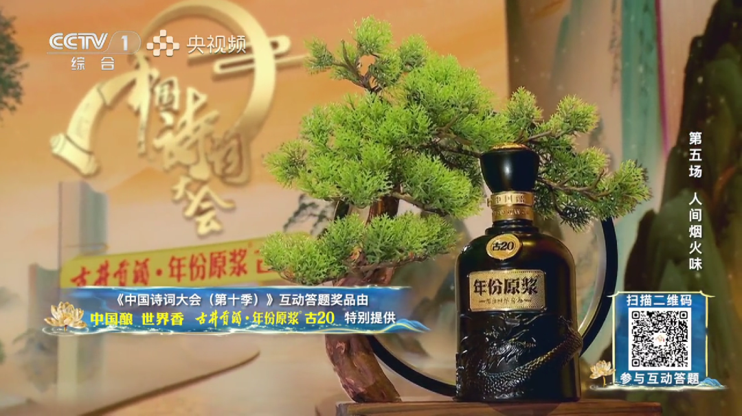 在《中国诗词大会(第十季)》最新一期节目中,古井贡酒作为“人间烟火味”的见证者与参与者,通过主持人口播、舞台LOGO展示、角标等多种呈现方式融入节目之中,不仅为选手们的精彩表现增添了更浓郁的情感底色,更让观众在品味诗词之美的同时,深刻感受到“诗酒趁年华”的人文哲思和中国酒文化的生生不息。