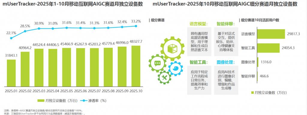 调研机构 Sensor Tower 数据显示,2025 年,全球用户 AIGC 应用的累计使用时长为 450 亿小时,这一数字是 2023 年的 9 倍,是 2024 年的 3 倍。