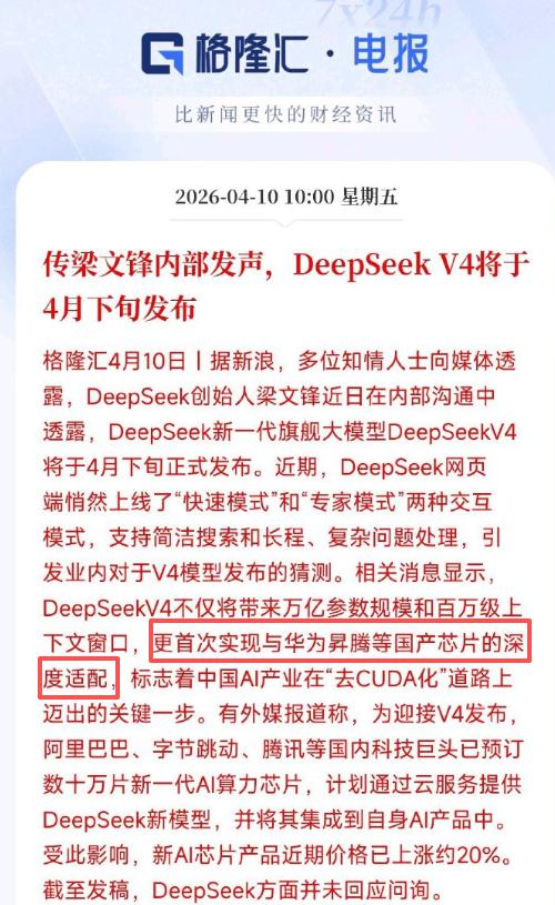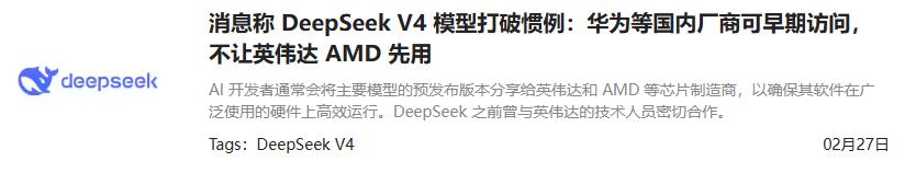 Tags: 芯片 DeepSeek AI V4 梁文锋 AI芯片