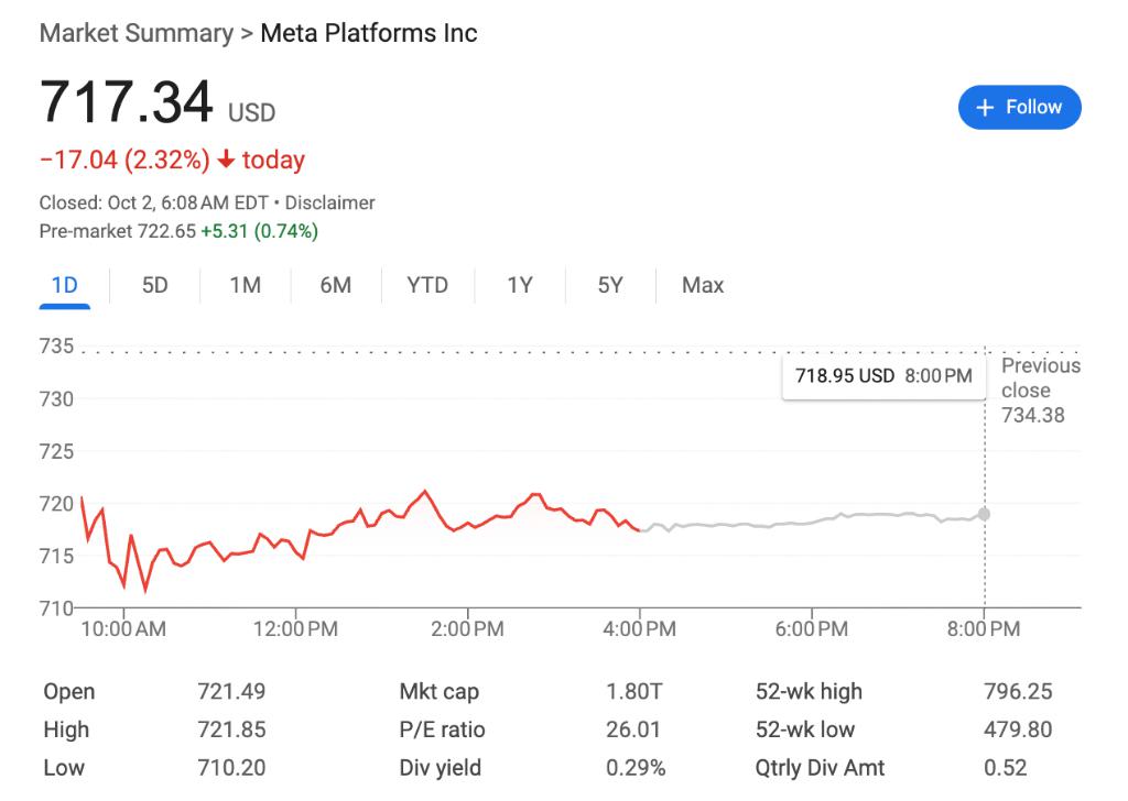 提要Sora 2 发布后,Meta 的股价在隔夜交易中下跌了 2.3%。...