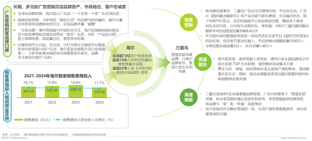 以海尔三翼鸟为例,海尔品牌用户资产赋能三翼鸟品类协同背书,广告营销助力品牌长效经营。