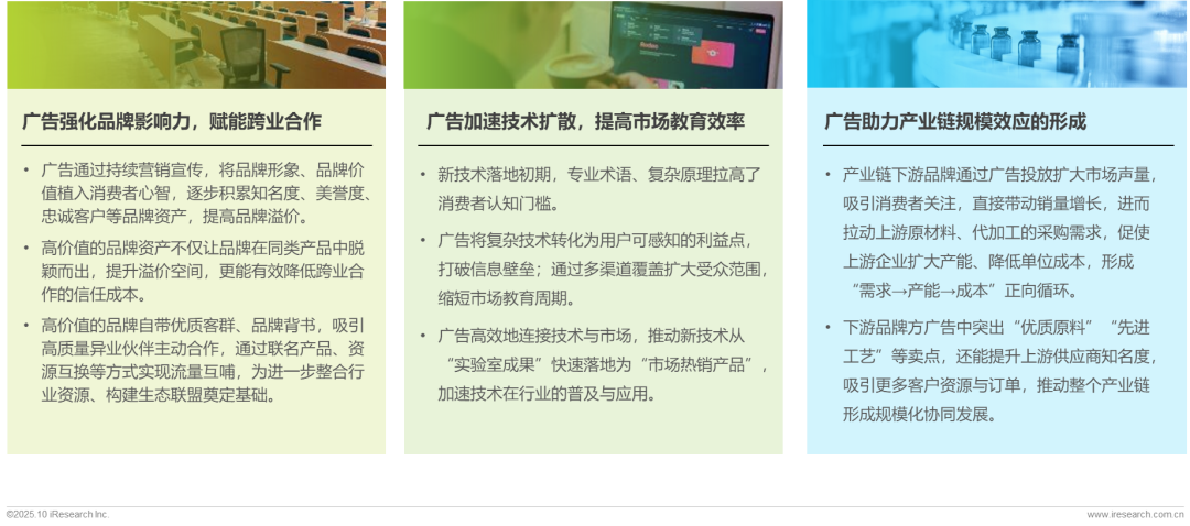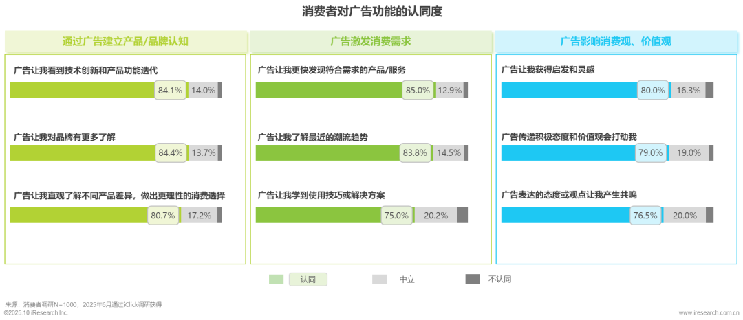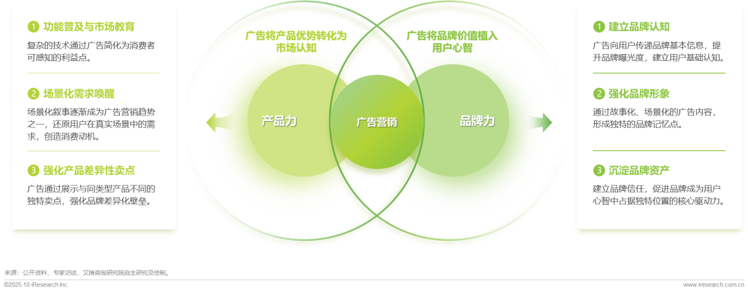 传递信息和建立认知方面,广告让消费者直观了解技术功能迭代、认知品牌;在激发消费需求方面,广告让消费者发现与需求匹配的产品/服务、了解潮流趋势,进而产生购买意愿;同时,广告展示的观点态度与价值观也在潜移默化地影响消费者的消费观念。