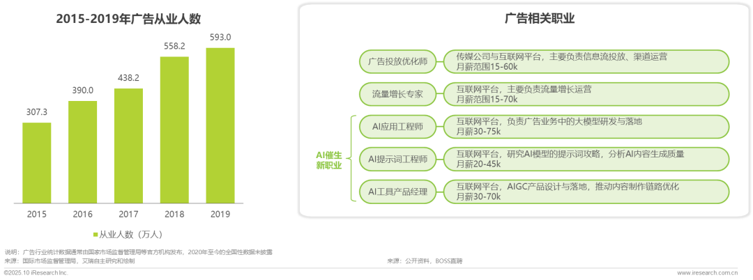 广告行业从传统媒介向数字平台迁移,对技术型人才的需求激增,另一方面,AI等技术推动广告行业向智能化、精准化发展,催生新职业。