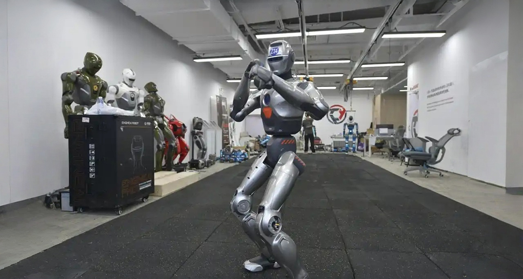 扫腿、出拳、跳舞、跨越15厘米高路障、跌倒爬起……在众擎机器人位于深圳的实验室,身高1.38米、体重40公斤的人形机器人“小众”为记者展示了一整套行云流水的动作。