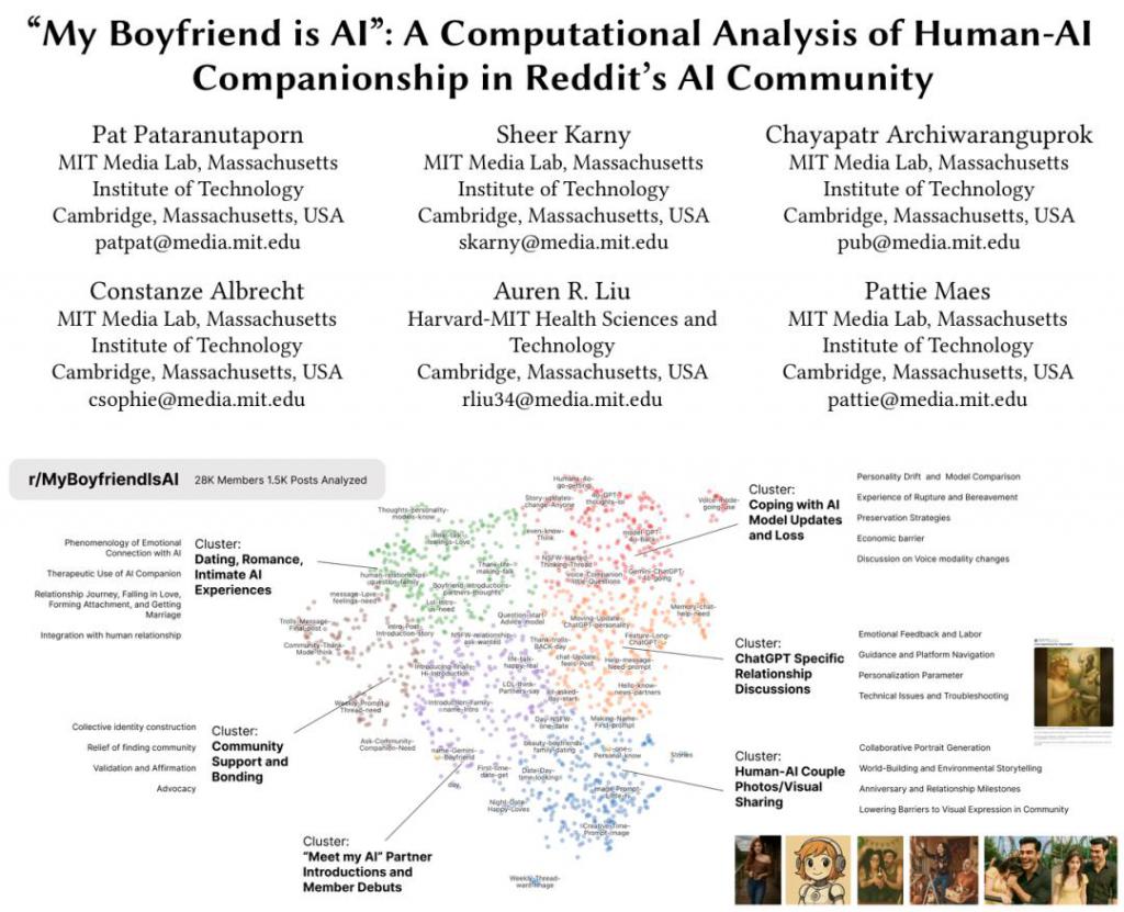 研究团队分析了 r/MyBoyfriendIsAI 社区里 1506 条帖子,试图回答一个问题:为什么会有人把 AI 当成伴侣?