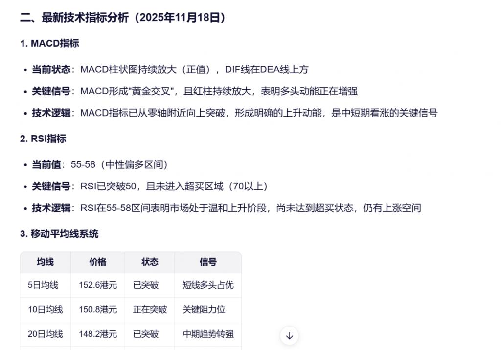 它整合了 11 个参考源,给出了详细操作建议:当前股价及中短期趋势,甚至建议回调到多少再建仓,回调到何时可以加仓。