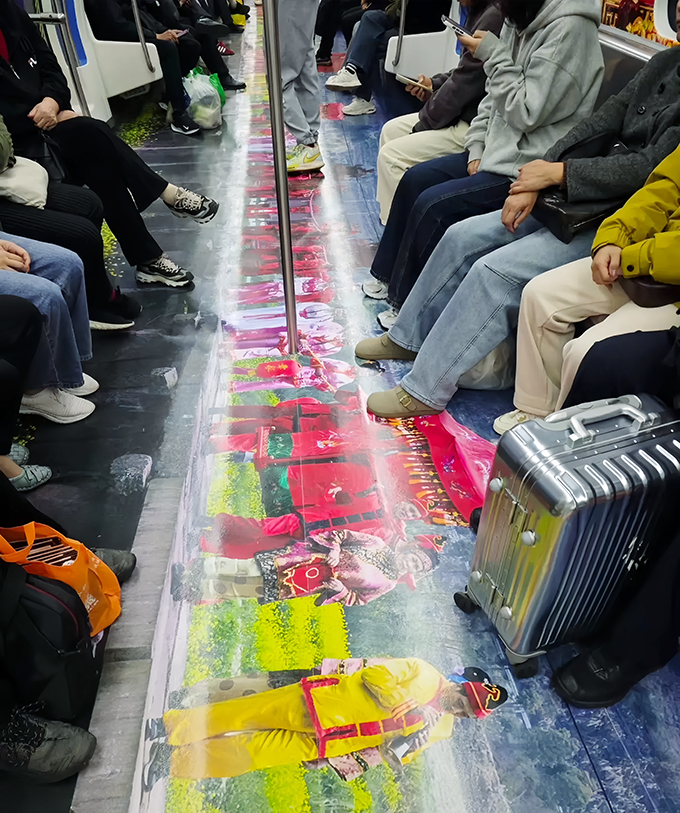 “十里红妆”作为浙东地区特有的传统婚俗,承载着对女性出嫁的珍视与祝福,本应被庄重对待。然而,将其迎亲队伍完整印于地铁地板,任人踩踏,很可能会消解其文化庄严性。民俗观念中本就忌讳“踩人像”,尤其新娘、轿夫等形象被乘客反复践踏,极易引发心理不适与某种亵渎感。可见传播方式的失当,可能会导致传播本意被扭曲,甚至适得其反。