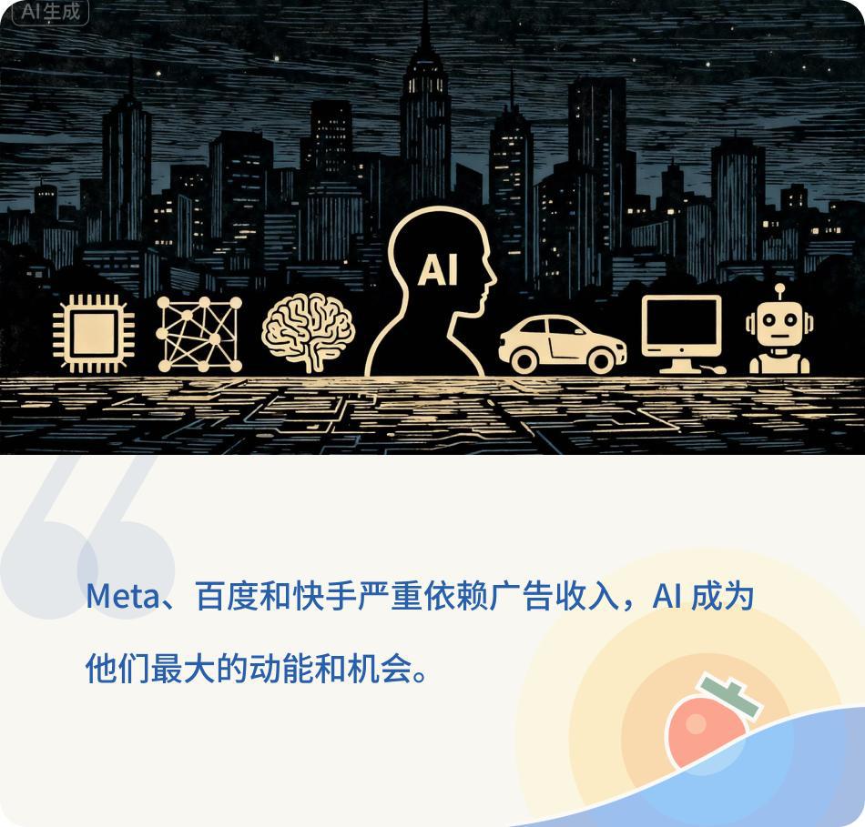 广告业务在两家公司的营收结构中均占据重要地位:百度核心在线营销服务占总收入的 53%,快手线上营销服务占比超 56%。如果他们要讲 AI 增长,对广告收入的影响首当其冲。