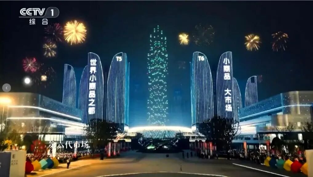宣传片以第六代市场收尾,与开篇的义乌全球数贸中心交相呼应,“世界小商品之都”“小商品 大市场”的灯光秀,强化义乌的城市定位,彰显出“世界义乌”的综合实力。